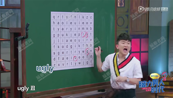 嘉賓張大大率先挑戰了這題,直接上去圈了四個字母,UGLY(醜)。