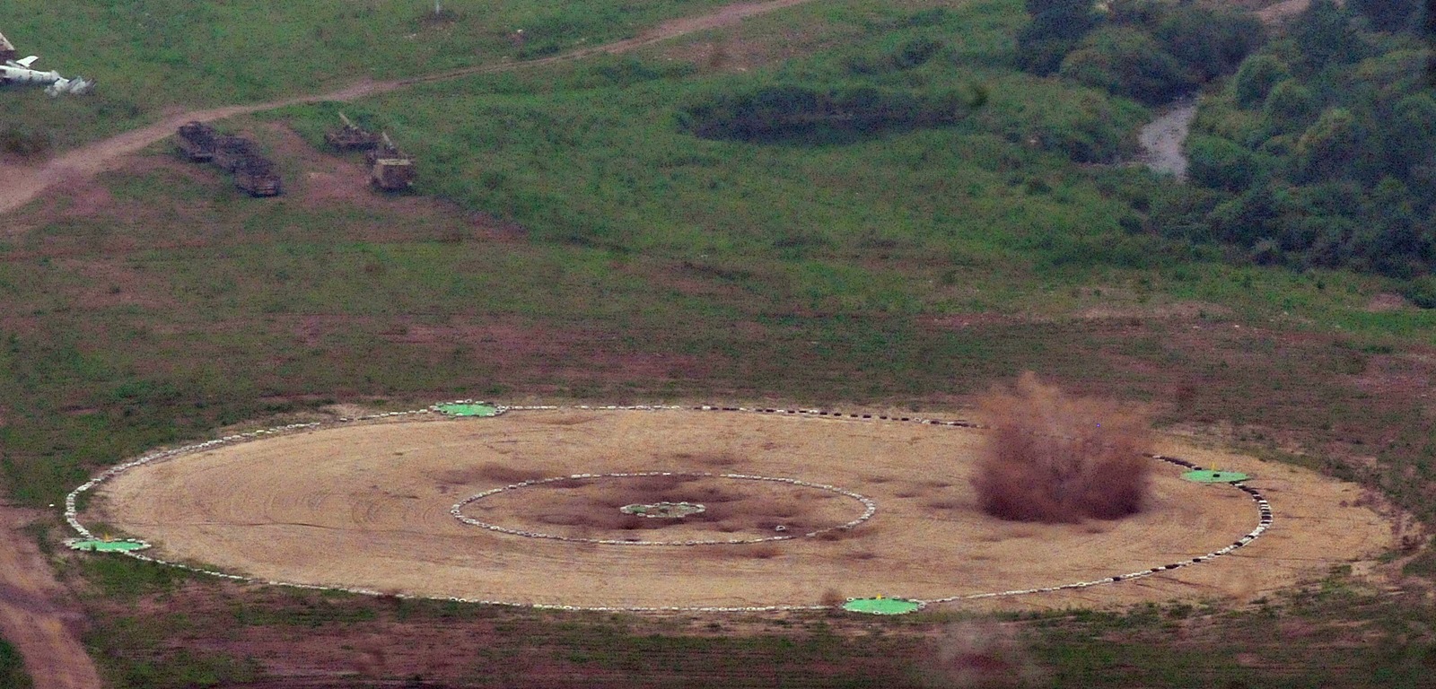 靶場被命中瞬間,旁邊是佈置的模擬目標