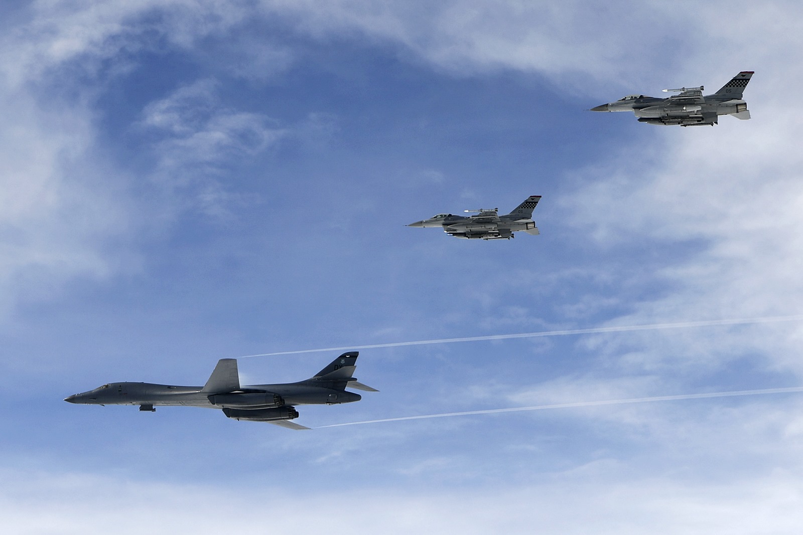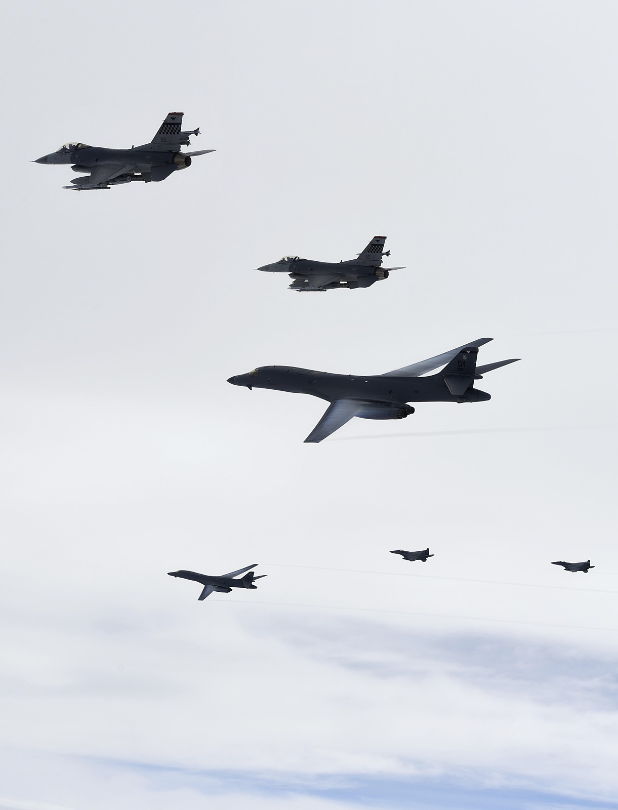 據韓聯社8日報道,2架B-1B戰略轟炸機從關島安德森空軍基地起飛後,與2架駐韓美軍的F-16C戰機與2架韓國空軍的F-15K戰機會合,共同前往韓國東部的江原道必成靶場參與實彈演習。演習結束後,美軍轟炸機機接着向西飛行,直至朝韓邊境的非軍事隔離區(DMZ)附近,才掉頭東返。