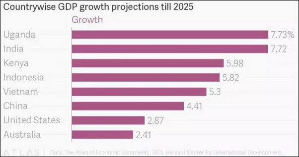 報告還預測,到2025年,烏干達是唯一一個增長可能快過印度的國家,預計GDP增速為7.73%。