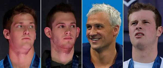 四名醜聞運動員:Jimmy Feigen, Gunnar Bentz, Ryan Lochte, Jack Conger(從左至右)