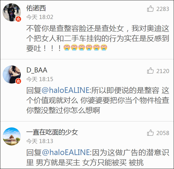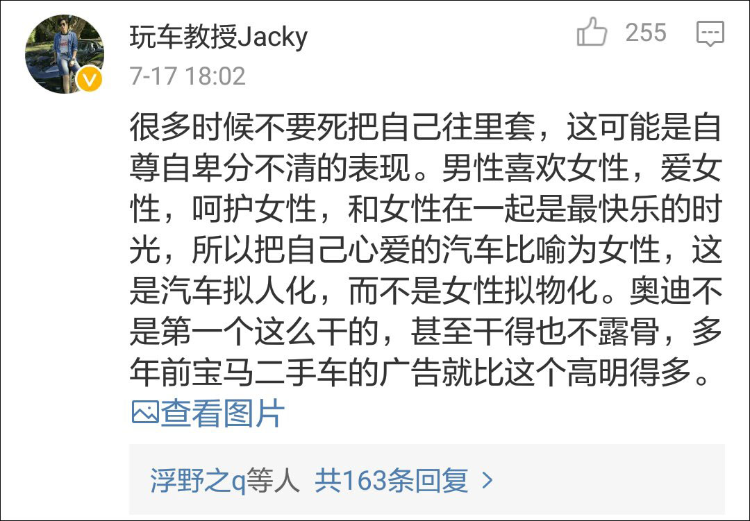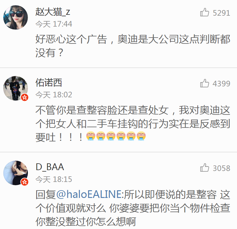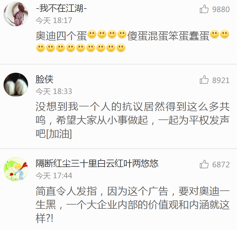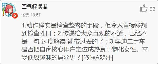 所以,奧迪的這則廣告到底是要怎樣?!@奧迪 官方微博下方也有大量網友質疑。