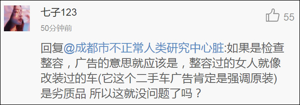 即使只是檢查整容,廣告的意思難道是整過容的女人就像改裝過的車?