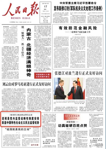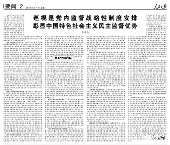 據人民日報海外版旗下微信公號“俠客島”(ID:xiake_island)18日消息,《人民日報》17日在二版刊登了王岐山的一篇署名文章:《巡視是黨內監督戰略性制度安排 彰顯中國特色社會主義民主監督優勢》。