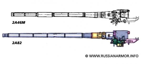 從外觀上看,2A82的主要變化是炮管略微加長,並取消了抽煙器,其是否已經採用了俄羅斯坦克炮此前沒有用過的電渣重融工藝,尚不清楚