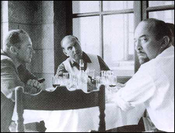 巴黎的“地下組織”:中情局特工及文化自由代表大會主席邁克爾·喬塞爾森(Michael Josselson)(中)同約翰·克林頓·亨特(John Clinton Hunt)和梅爾文·拉斯基(Melvin Lasky)(右)共進午餐。