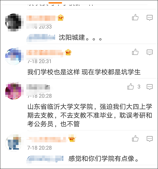 記者在該話題下發現,不只瀋陽城市建設學院有實習管理上的不足,許多學生也抱怨自己學校安排的實習也存在諸多問題。有網友調侃:同一個世界,同一種學校。