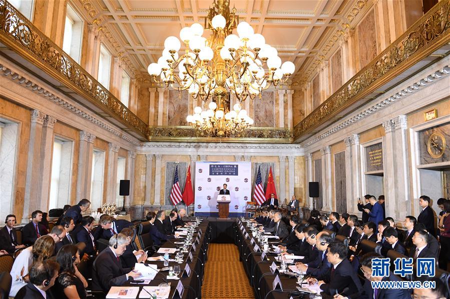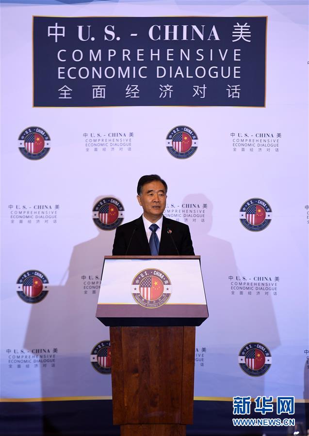 7月19日,在美國華盛頓,中國國務院副總理汪洋在中美全面經濟對話上講話。新華社記者 殷博古 攝