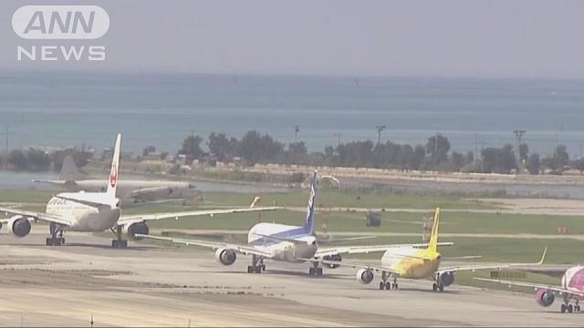 那霸機場大量民航客機滯留(日本ANN新聞網報道截圖)