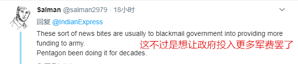 有趣的是,許多外國網友在轉發這條新聞時,居然紛紛@中國,或者打上#China#這樣的標籤,網友們非常好奇,中國人看到這條新聞後會怎麼看?有網友表示,“連巴基斯坦都打不過,怎麼能跟中國抗衡?”