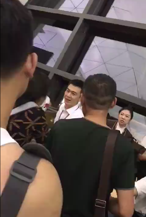 視頻中顯示,多名乘客圍住機場工作人員,期間,一名揹包的中年女子拉住一名男性機場工作人員的手,三次斷掌摑其面部,整個過程中工作人員沒有反抗。