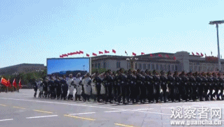 接受檢閲後,三軍將士跑步迅速集結完畢,超燃!