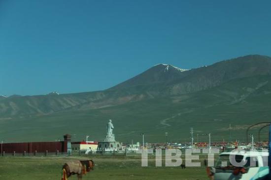 扎西灘草原此時草長鶯飛、野花盛開,遠處草原和藍天形成一條起伏的波浪線,潔白的雲彩像牛奶一樣飄在空中。治多縣的僧人們和農牧民羣眾們已經早早地、秩序井然地等候在草原上。