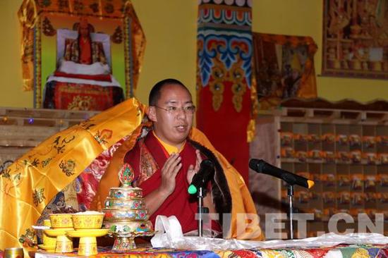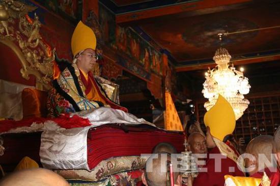 △貢薩寺僧人用傳統儀式歡迎班禪大師的到來。