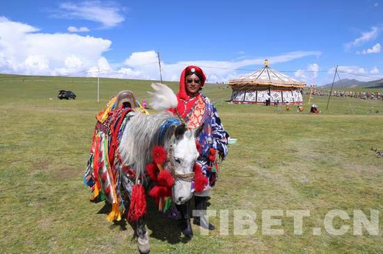 △圖為治多縣的信教羣眾準備獻給班禪大師的寶馬。