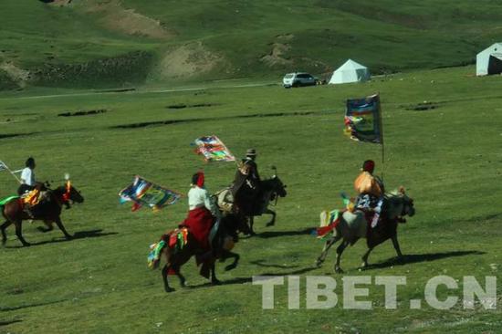 △康巴騎士們熱烈歡迎班禪大師蒞臨。