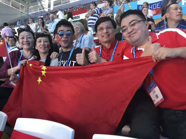孫楊父母隨隊出征(孫楊媽媽左一,孫楊爸爸右二)