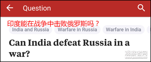 除了最近這個有關中印之間開戰的討論,小編髮現quora上印度能不能擊敗某某國的提問還真不少。