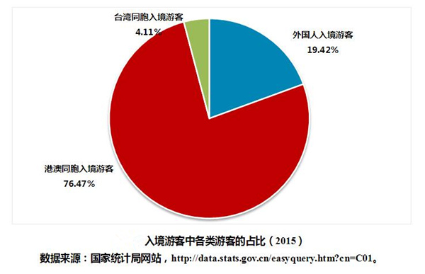 與熱火朝天的出境遊形成鮮明對比的是入境遊。近年來到中國旅遊的外國遊客並沒有顯著增長,甚至可以説是增長緩慢了。根據中國與全球化智庫最近的一份報告,2005年至2015年,中國入境遊客數量年均僅增長1%,而且其中八成來自港澳台地區。這個增速不僅遠遠落後於發達國家和其他新興經濟體,還遠遠落後於亞太地區的平均增速。而在來到中國大陸旅遊的外國遊客中,六成以上來自亞洲且以韓日為主。