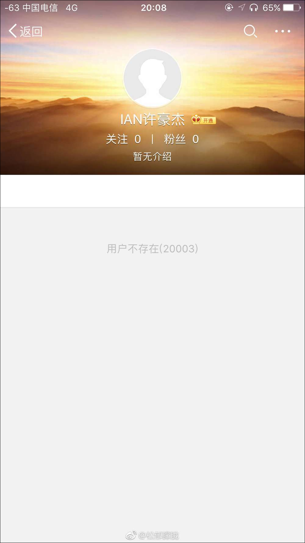 昨(8月8日)晚,微博認證為“90後作家,《超級演説家》全國季軍,搞笑視頻自媒體”的網紅許豪傑已被微博封號。