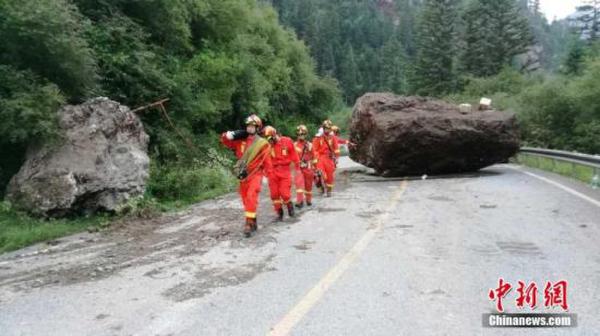8月9日,四川阿壩消防官兵徒步進入震區搜救