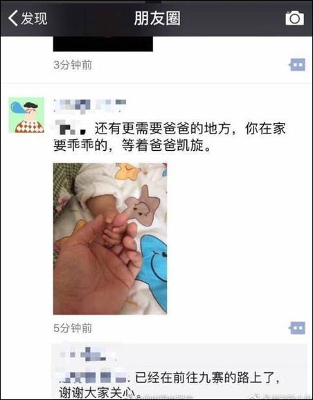 8月8日晚9:29,一名警寶出生,但新晉爸爸@江油公安交警 輔警嶽霖,晚9:30接到單位緊急集合抗震救災的命令,不久便奔赴九寨溝災區。