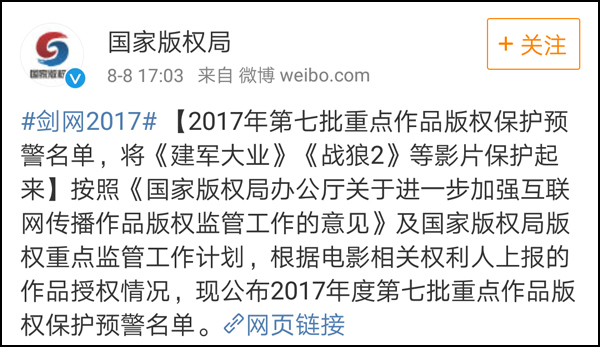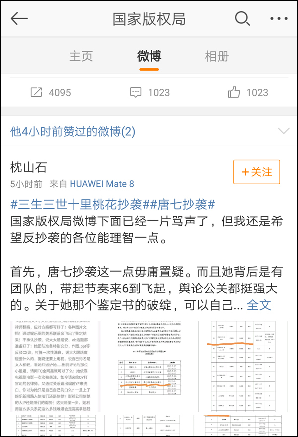 隨着唐七8月9日發佈聲明否認抄襲自證清白引起眾怒,國家版權局的官微也迅速被打抱不平的反抄襲網友們攻陷。