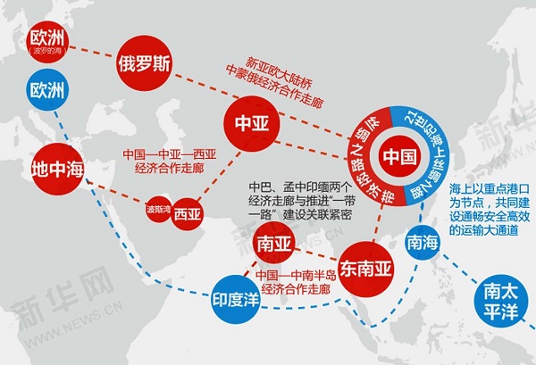 一帶一路示意圖,來源:新華網
