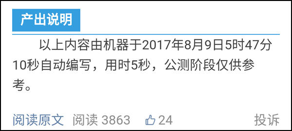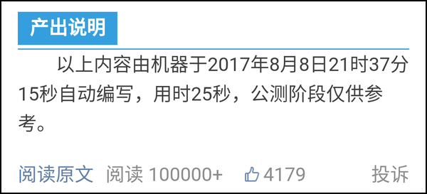 九寨溝地震首條消息由機器人發佈,540字僅用時25秒!