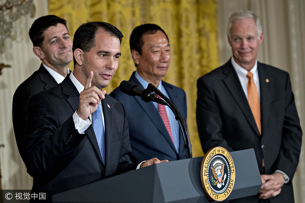 威斯康星州州長(發言者)和郭台銘在一起@視覺中國