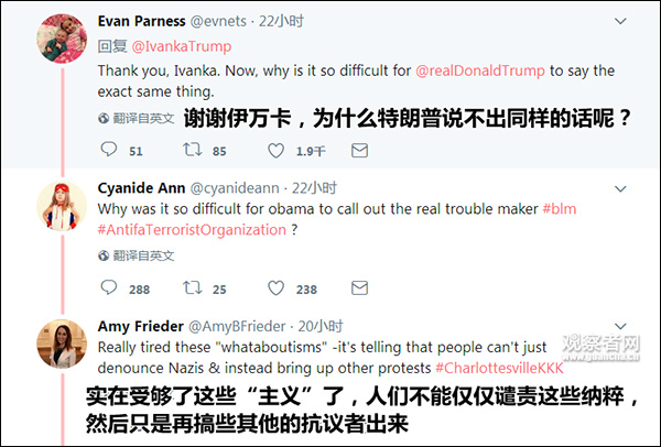 特朗普未批評“白人種族主義者”伊萬卡忙救火,但美網民不買賬