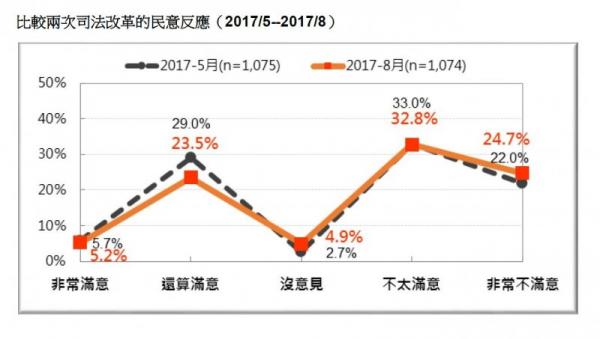 常見的“官司”可分為民事、刑事,有分析認為,台灣民眾對於民事案件的反感程度較小,但對刑事案件的意見頗大。2016年的調查顯示,台灣人對於法官的信任度只有28.4%,不信任度高達65.4%,甚至還不如政治人物。今年4月底,親綠民調機構調查顯示,警察以74.1%的好感度位居台灣民眾最有好感的職業,法官則以24.5%的好感度墊底。警察常以保護台灣民眾的形象出現,法官在一些具有重大影響的案子上則常常“逆民意而行之”,這在選舉社會的台灣飽受詬病。最被外界撻伐的是,台灣法院常以“有教化可能”讓許多民怨沸騰、高呼“判死”的嫌疑人免於一死。