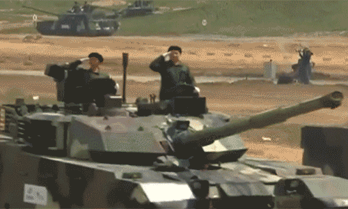 分列式和機動演示結束後,實彈射擊環節開始。“紅箭10”、“紅箭11”和“紅箭12”這三款新型反坦克導彈進行了反坦克實驗;然後VT4主戰坦克直面120毫米反坦克火箭彈,利用主動防護系統當場將其擊碎,VP-11型防地雷反伏擊車也接受了10公斤烈性炸藥的檢驗,展現了自身卓越的防護水平;VT4、VT5主戰坦克和VN11A型105毫米突擊車都進行了實彈打靶,全部命中。