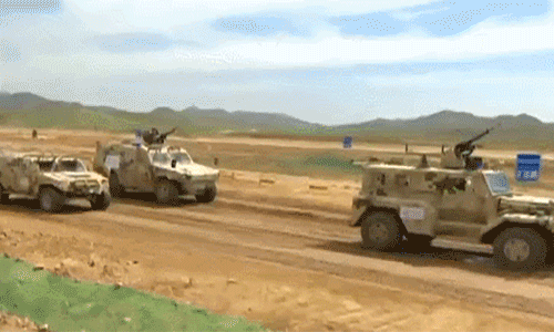 再後是7輛VT4型主戰坦克,這是中國最高端的出口型主戰坦克,整體性能僅次於我軍現役的99A型主戰坦克,甚至可以抗衡美軍自用的M1A2SEP主戰坦克。參加演示的VT4配備了數字化全電火控系統和GL-5型主動防護系統,使用了1300馬力發動機。