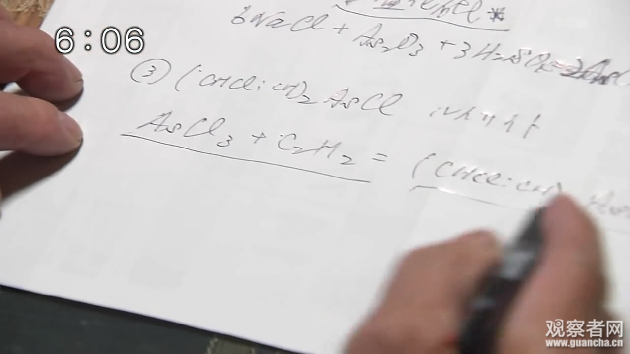 藤本在接受採訪時默寫路易氏毒氣的製備化學方程式(資料截圖)