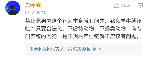 網友表示,養殖狗肉可以吃,抓別人的不行。