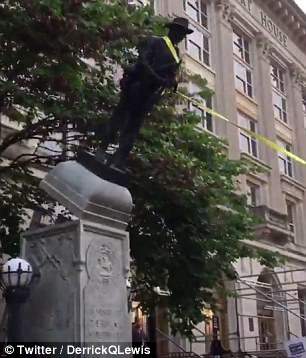 躺槍的邦聯士兵雕像(圖片來自每日郵報電子版)