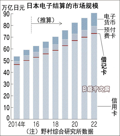 野村稱,預計到2020年日本的電子結算市場規模將比2015年增長約4成,達到82萬億日元(約5.13萬億人民幣)。智能手機的普及將促進電子結算的市場擴大。從事金融和IT(信息技術)相結合的“金融科技”的企業相繼湧現,通過電子結算進行朋友間轉賬、就餐時AA制也成為可能。