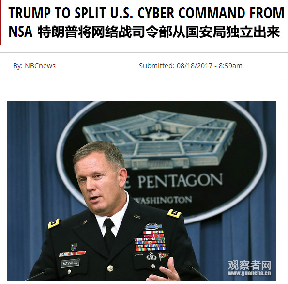 在高調啓動“301調查”作勢開打對華經濟戰的同時,美國又宣佈升級網絡司令部。