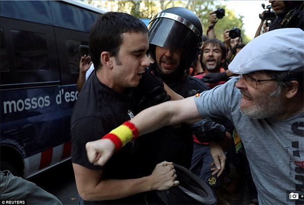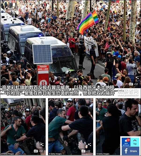 恐襲後 反右翼人士與納粹長槍黨在巴塞羅那打起來了