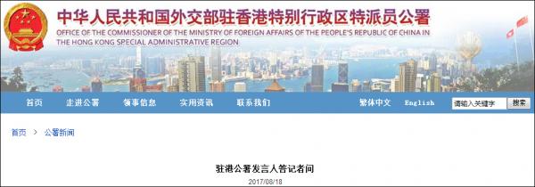 外交部駐港公署:絕不允許外國政府幹涉香港事務
