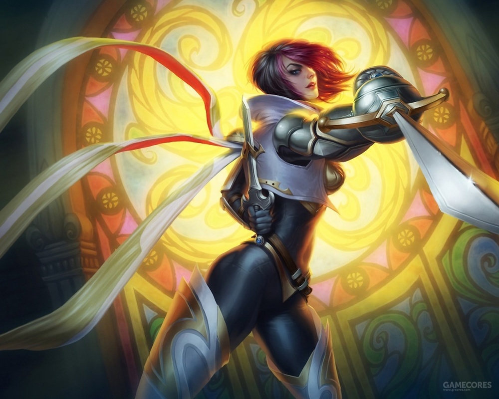英雄聯盟中的角色,無雙劍姬。可以注意到其副手的武器就是招架匕首