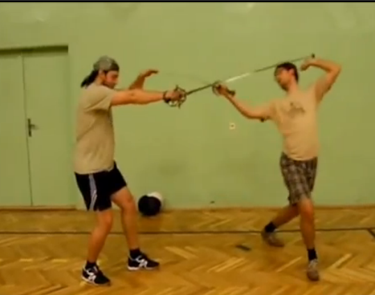 這裏順便更正一個問題。我曾説過所有的刀劍格擋技術都是以強劍身去格擋弱劍身。這個説法其實是不對的,這個理念實際上是應用在幾乎所有的歐洲刀劍上,其劍身強劍身部厚的有力,弱劍身部輕而薄,以此為基礎形成了強弱劍身的攻防體系。但東亞刀劍特別是中國與日本的刀劍並無非常明顯的強弱劍身之分,其劍身的厚度在整個劍刃上往往是沒有太大差別的,這使得用劍身前部去打開對方的武器成為了可能。由於筆者對於日本與中國劍術並不是十分了解,所以不敢在此妄言。