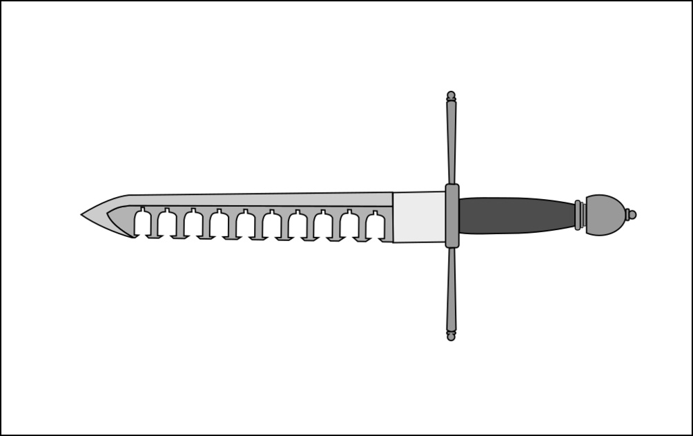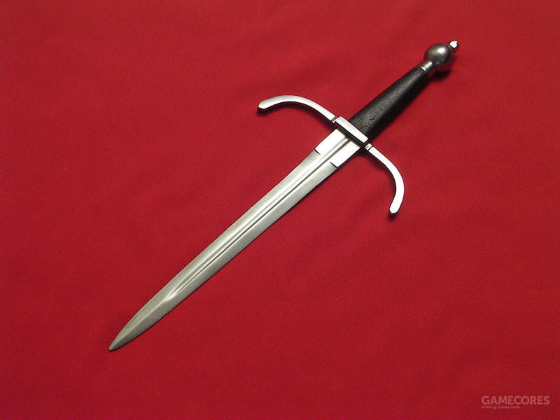 在介紹迅捷劍技術之前,我們需要先了解一個與迅捷劍相輔相成的武器——招架匕首(parrying dagger)。顧名思義,招架匕首就是用於招架的副手武器。招架匕首出現以後迅速代替了原本風行的小盾加單手劍的組合,迅捷劍加招架匕首成為了最強單挑配置。