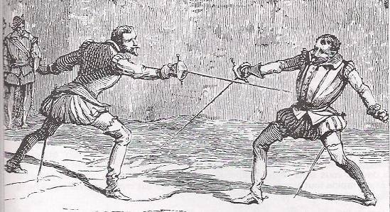 此處想放一張婦女脱掉上衣決鬥的圖以説明衣物刺進身體導致感染的死亡率的,結果圖找不到了,大家可以自行想象一下。順便一提,這張圖中的武器並不是迅捷劍,而是其後代小劍。
