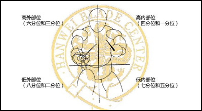 前文中有提到,根據護手形制不同,握法上有着不同的限制。而花式護手可以運用所有的握法,所以以花式護手為例説明。