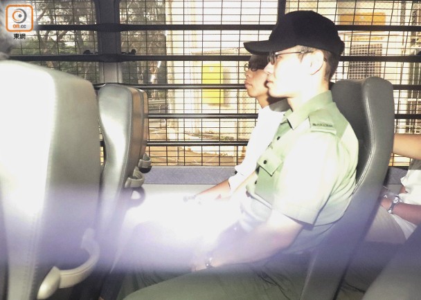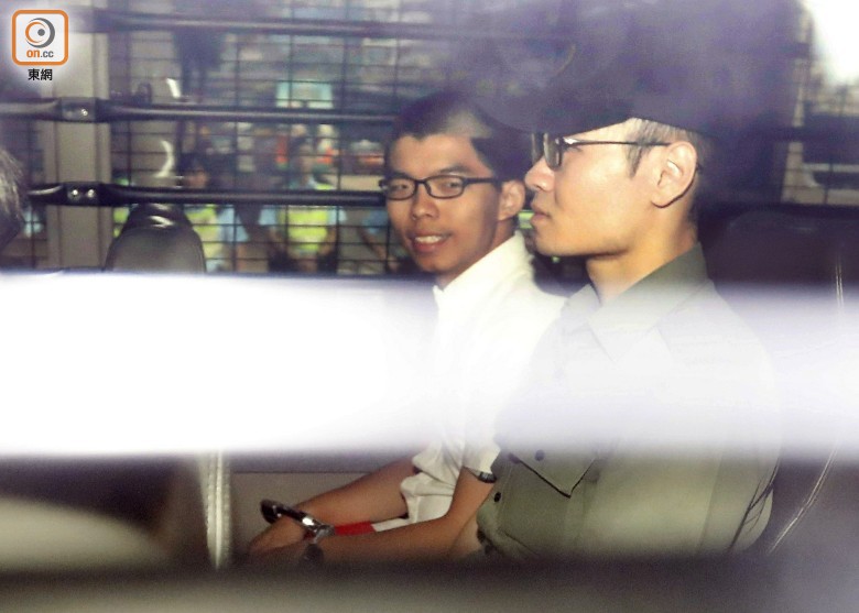 剃過頭的黃之鋒在囚車內(圖片來源:香港“東網”)