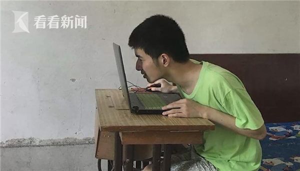 因為幾乎全盲,王寵需要把字號調大,眼睛貼近屏幕才能看清字(截圖自看看新聞)
