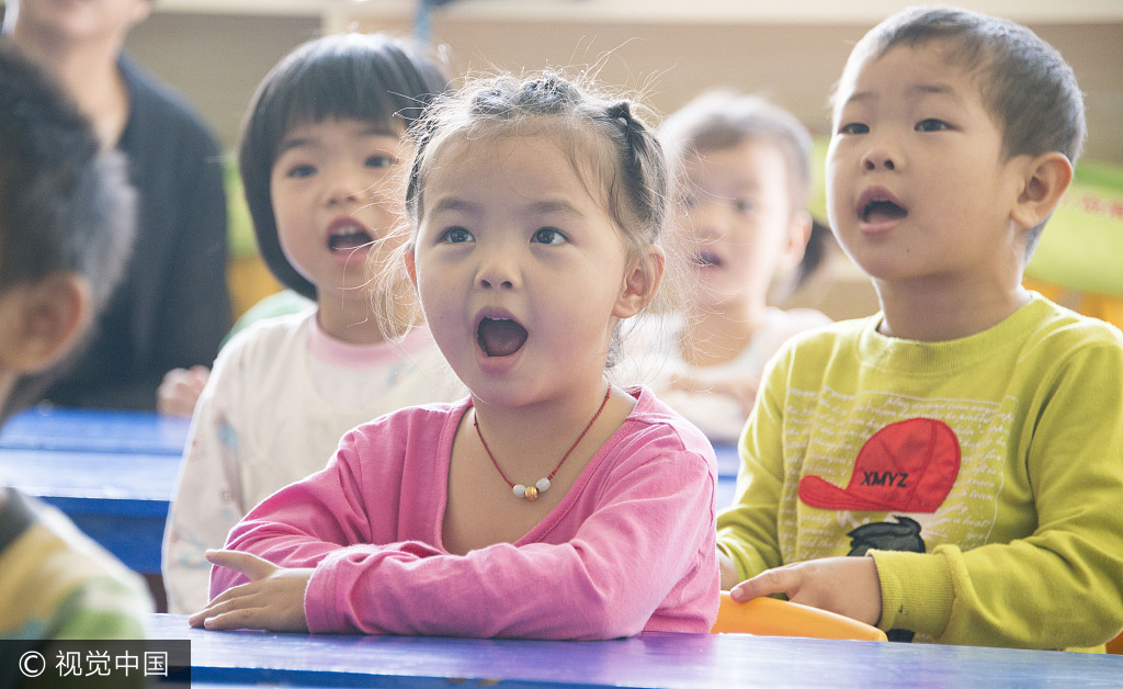 計生法修正案草案通全國人大常委會通過 2016年起出生的二孩均合法。圖為2015年10月16日,湖南新邵縣某幼兒園的孩子在上課。(圖片來源:視覺中國)