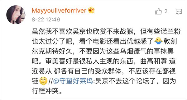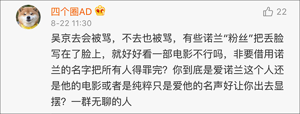 可有些激進粉絲卻開始質疑吳京有沒有這個資格,甚至上升到了懂不懂電影的高度。